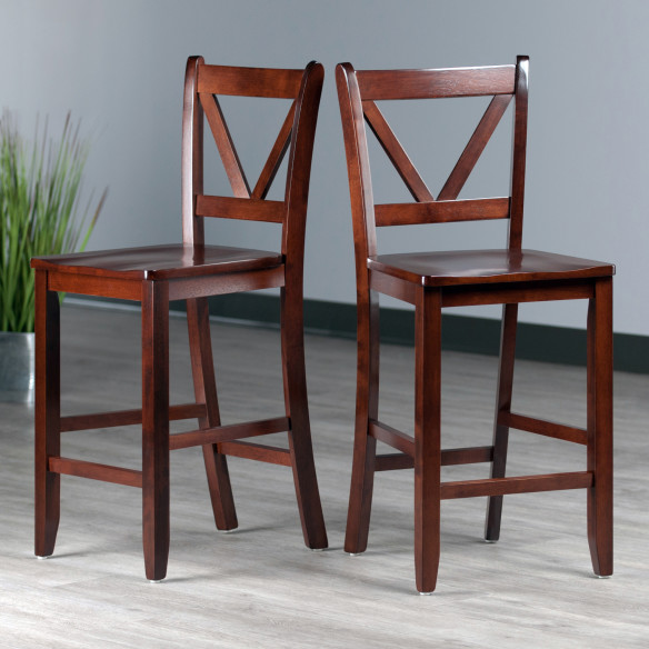 Victor 2-Pc V-Back Counter Stool Set, Walnut