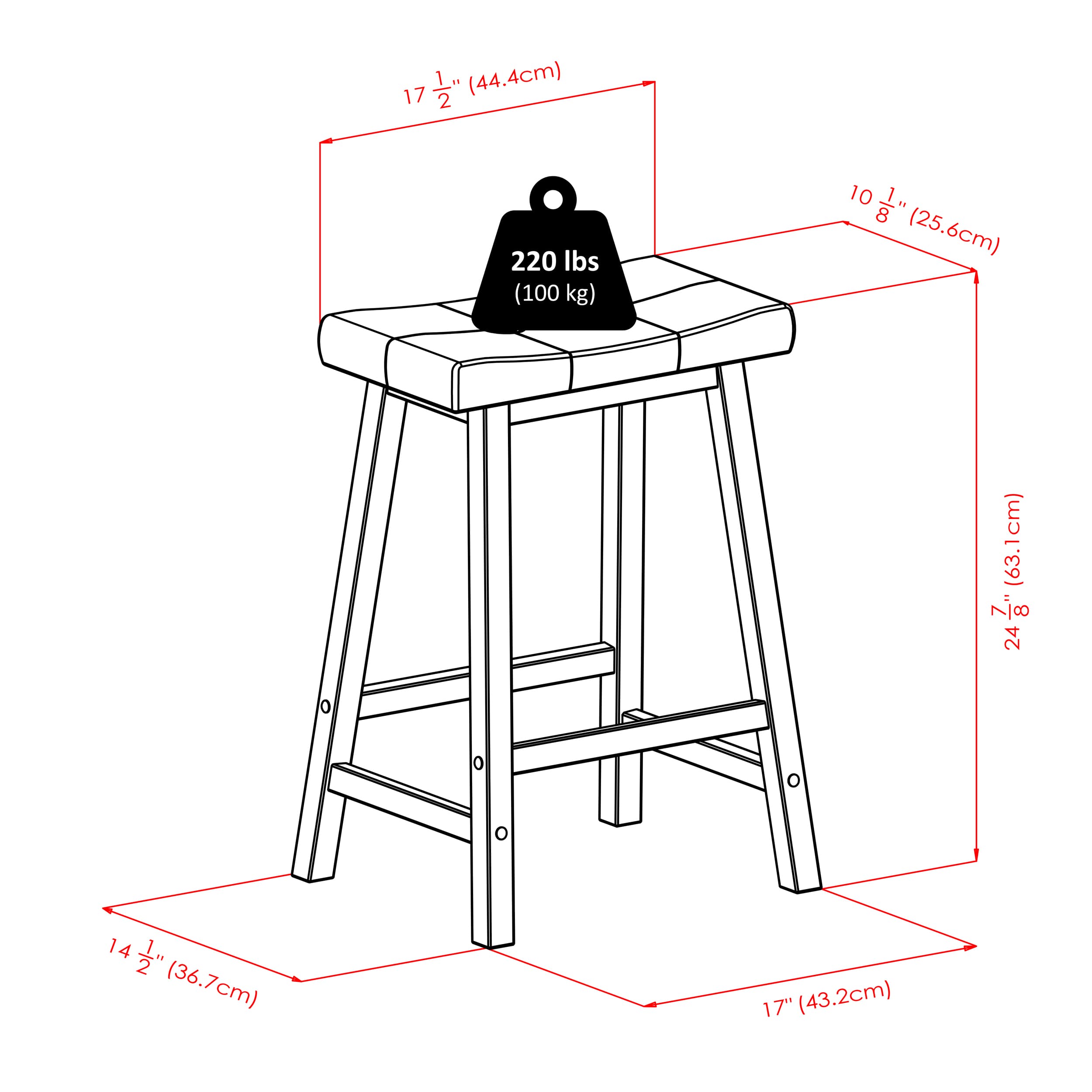 - Dimensions (W x D x H): Table - 39.4 x 19.7 x 33.3 inchesStool - 17.5 x 14.5 x 24.9 inches