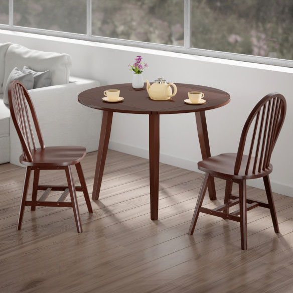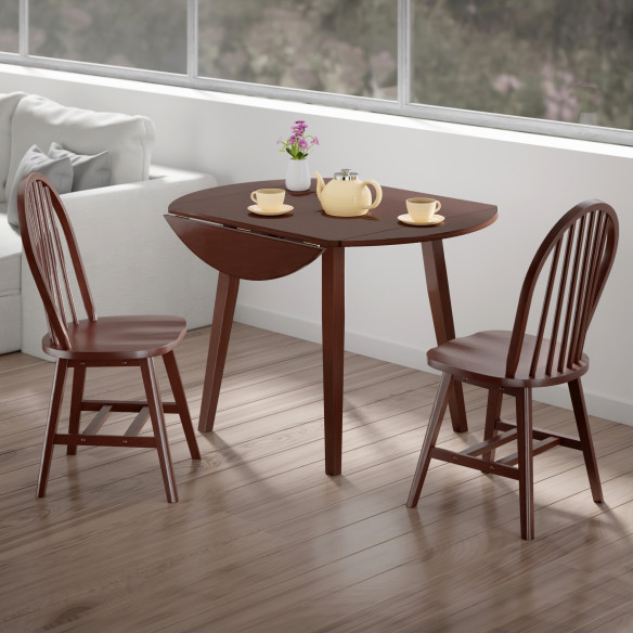 Dawson 3-Pc Drop Leaf Table with Windsor Chairs, Walnut