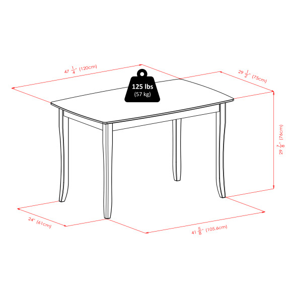 - Table top and legs feature slightly curved design for a classic look