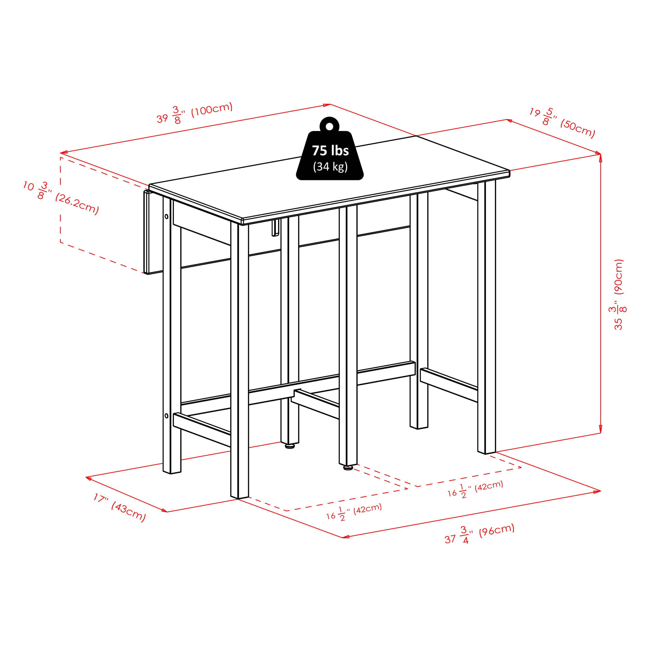 Lynnwood 3-Pc Drop Leaf Table with Ladder-back Counter Stools, Walnut
