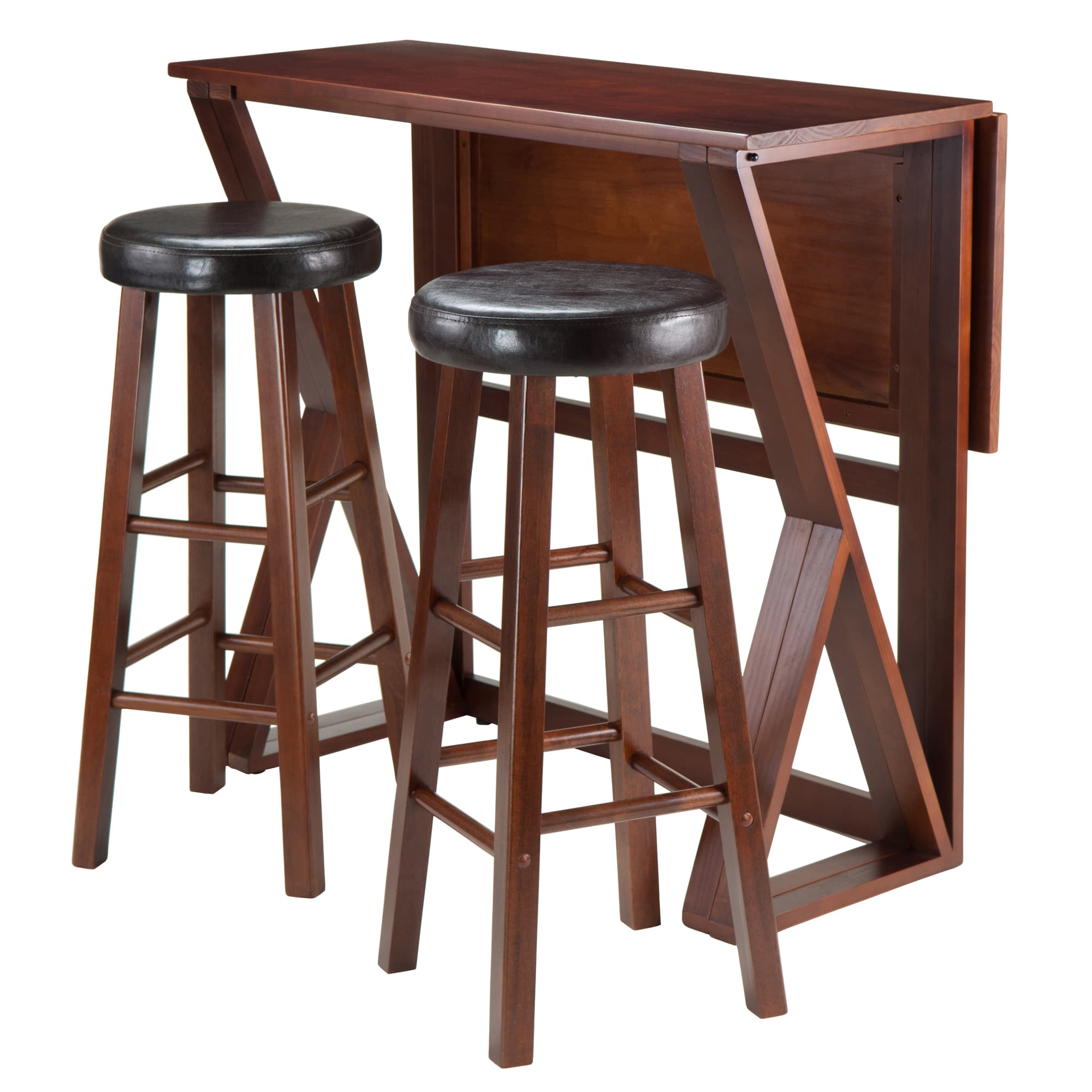 Harrington 3-Pc Drop Leaf Table with Cushion Seat Bar Stools, Walnut and Espresso