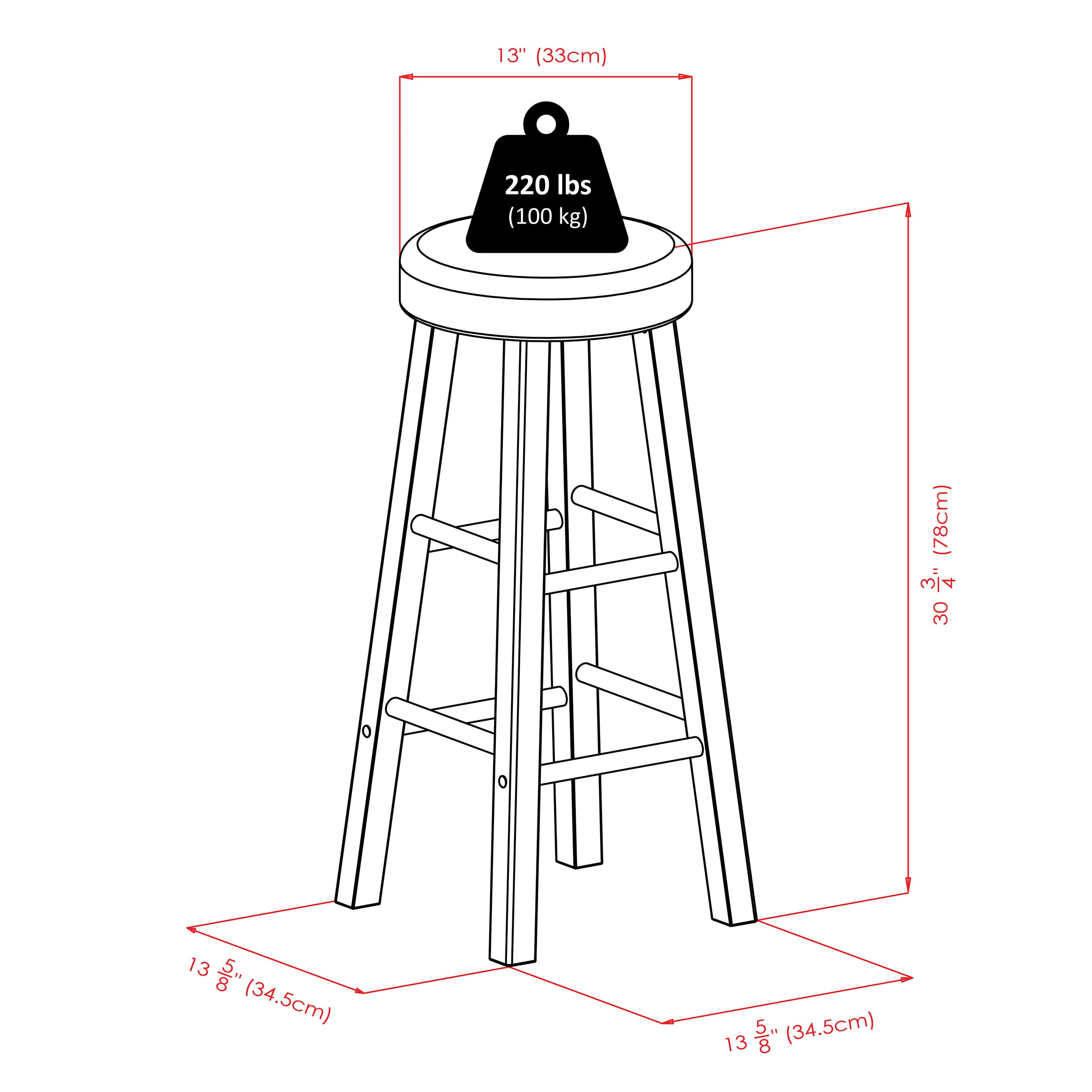- Dimensions (W x D x H): Table - 39.4 x 31.5 x 36.3 inchesStool - 13.6 x 13.6 x 30.8 inches