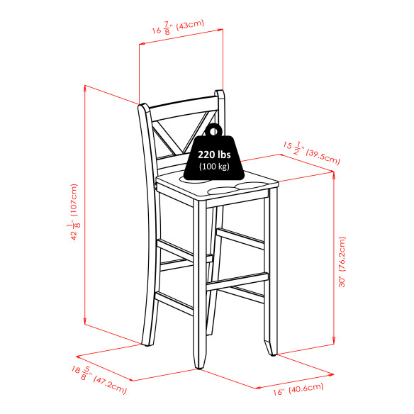 - Dimensions (W x D x H): Table - 33.86 x 33.86 x 38.98 inchesStool - 16.93 x 19.21 x 42.17 inches