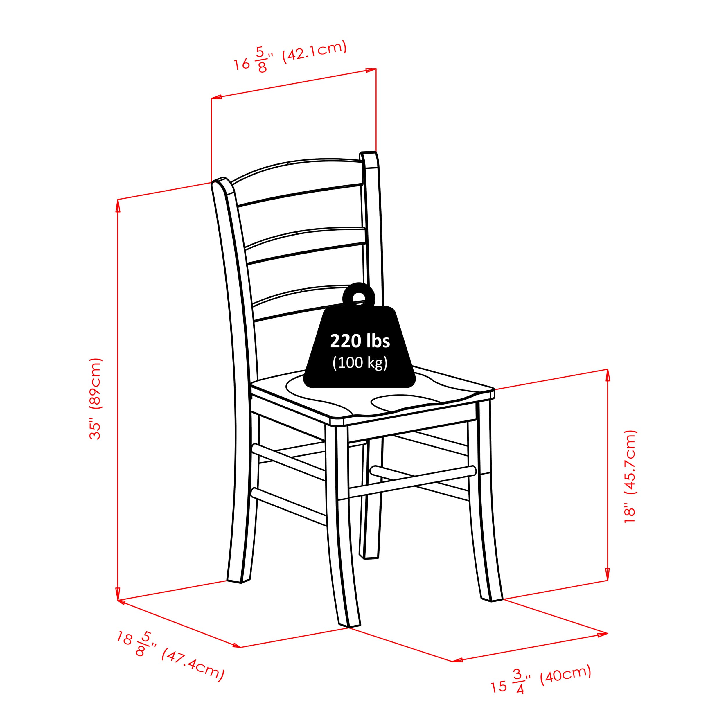 - Includes 2 ladder-back chairs with contoured seats and curved backrests for comfortable seating