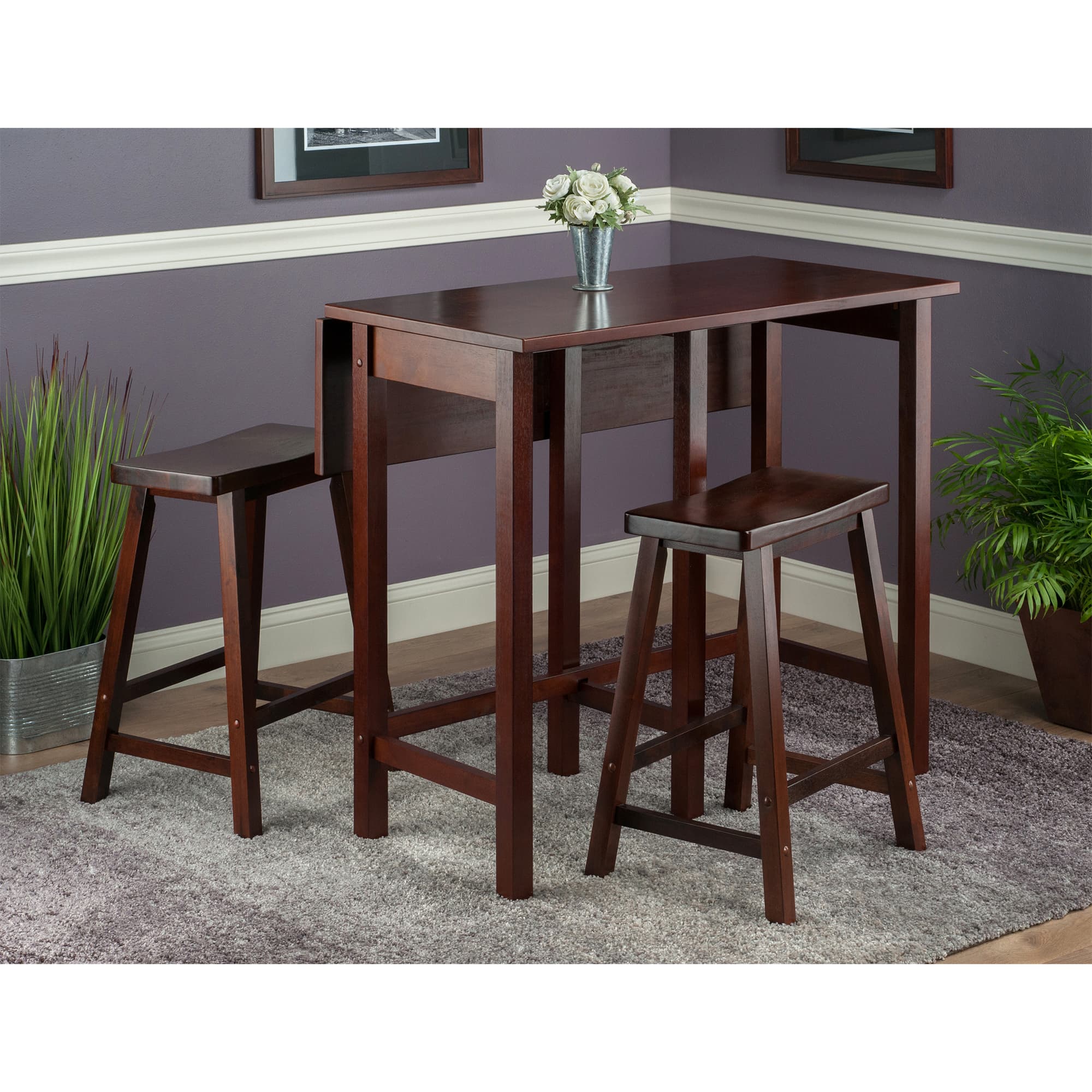 Lynnwood 3-Pc Drop Leaf Table with Saddle Seat Counter Stools, Walnut