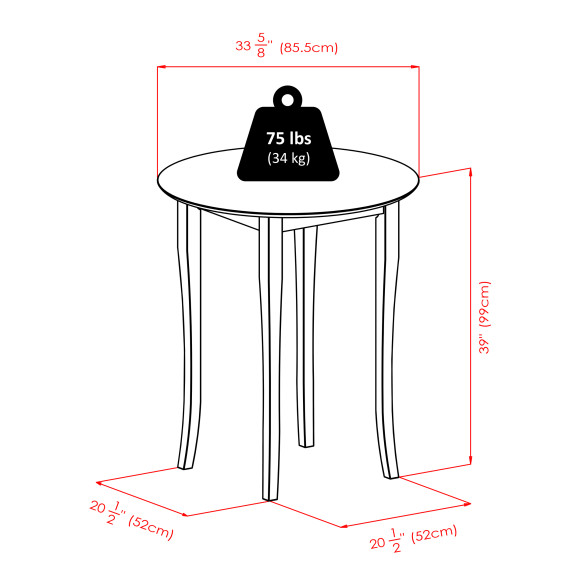- Dimensions (W x D x H): Table - 33.66 x 33.66 x 38.98 inchesStool - 16.93 x 19.21 x 42.17 inches