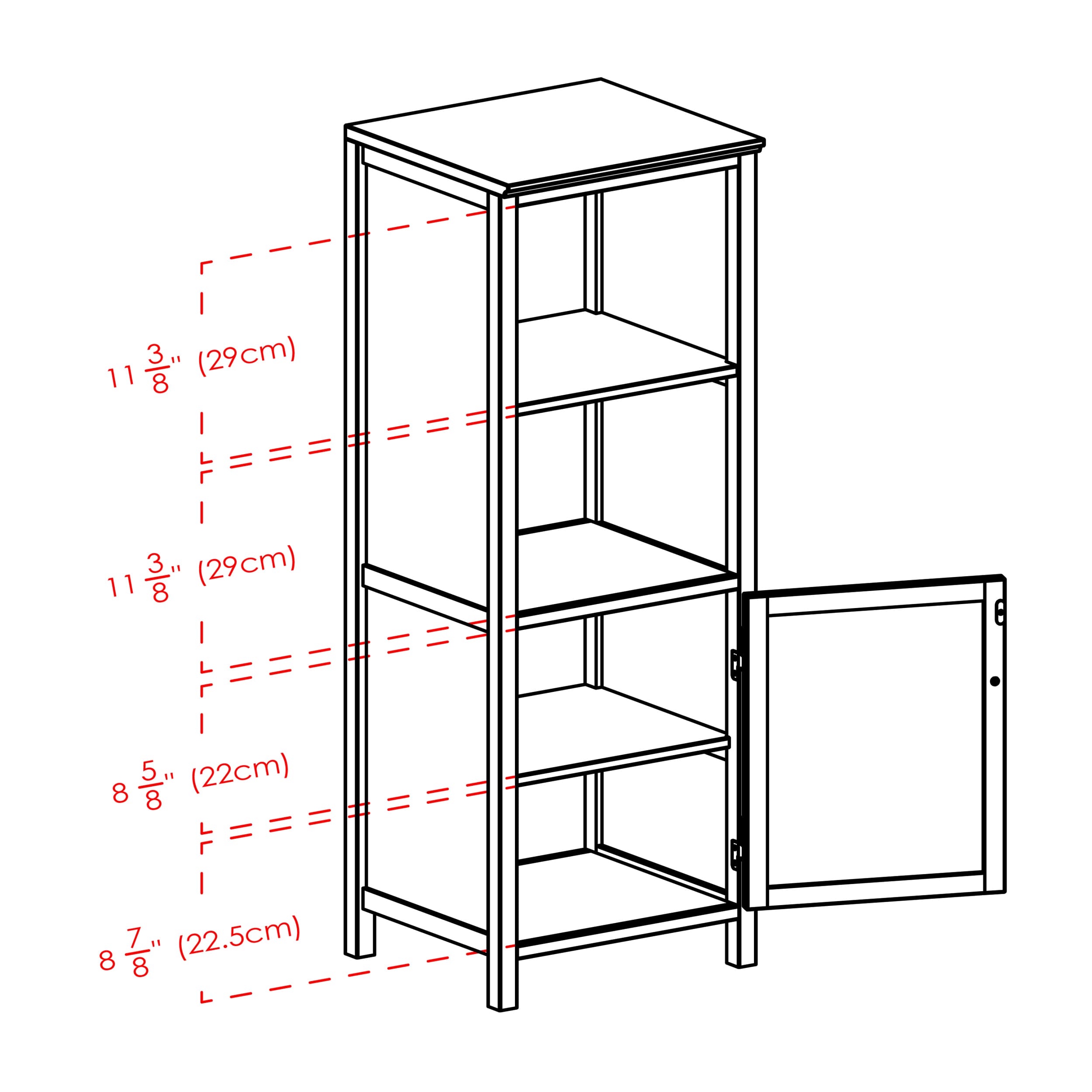 - Cupboard door closes softly with magnetic catch