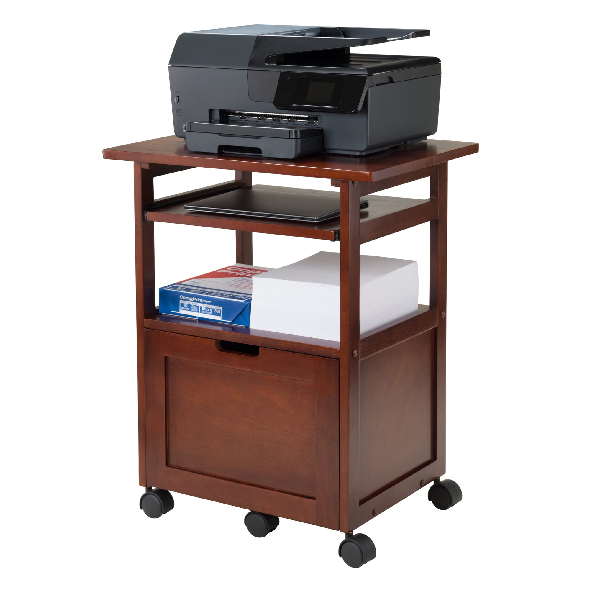 Piper Mobile Work Station with Storage, 30" High, 24" Wide, Walnut