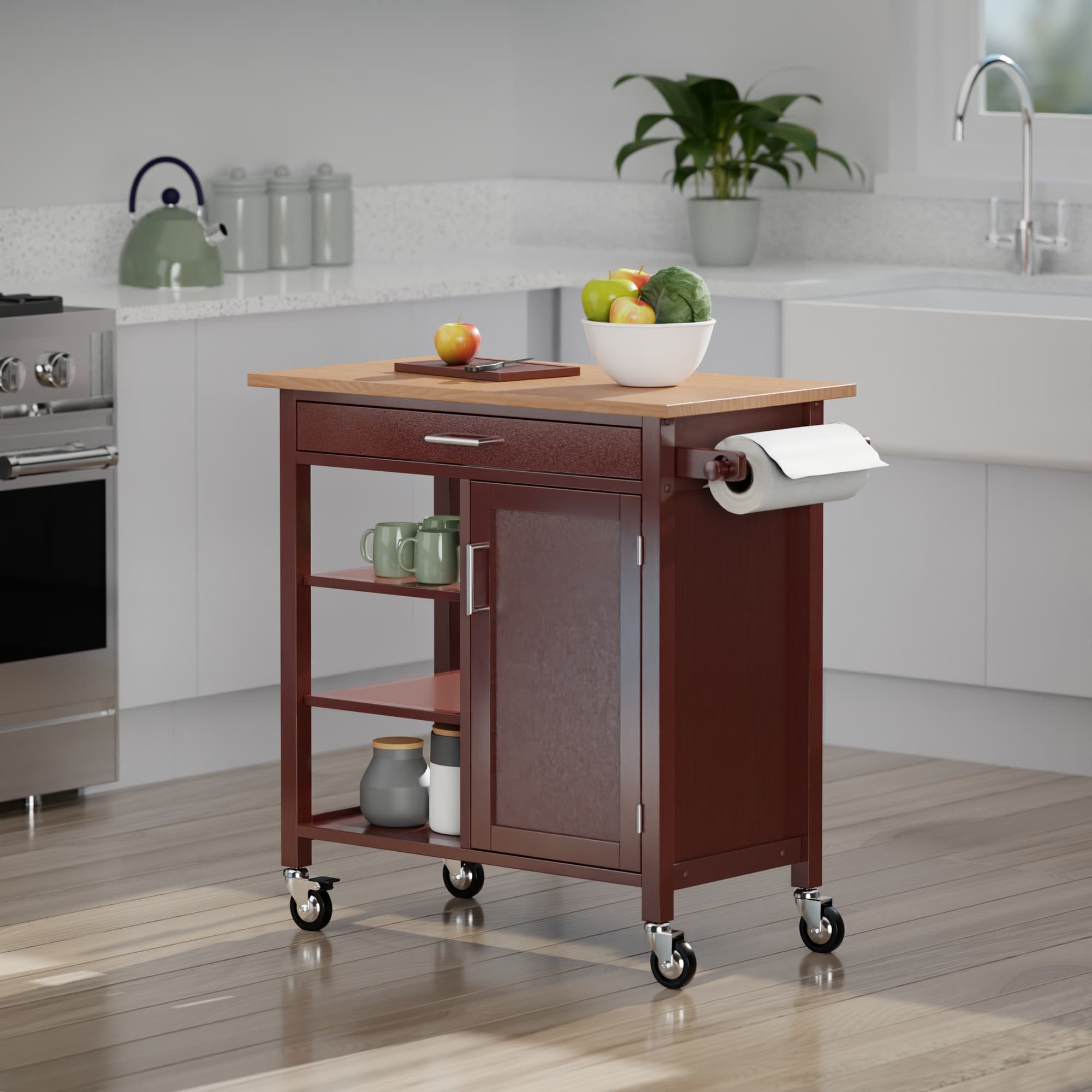 Marissa Kitchen Utility Cart, Natural & Walnut