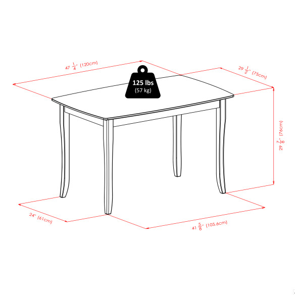 - Table top and legs feature slightly curved design for a classic look