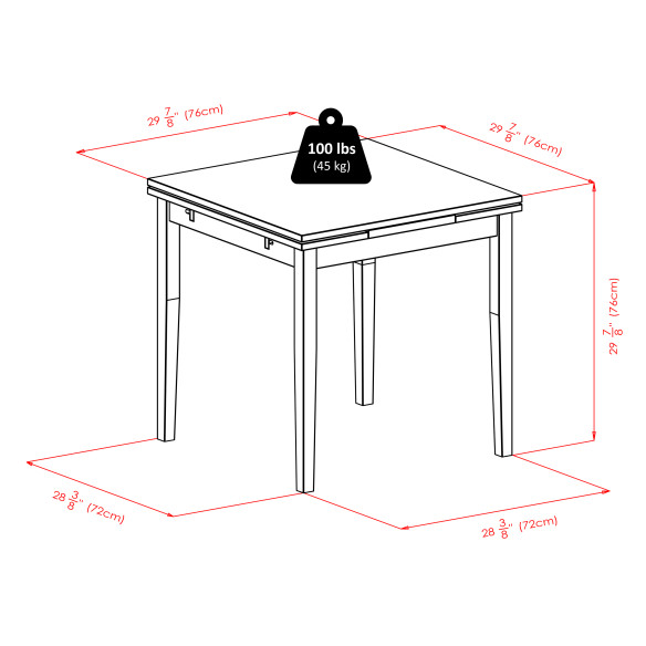 - Dimensions (W x D x H): Table - 48.03 x 29.92 x 29.92 inchesChair - 16.54 x 18.63 x 34.65 inches