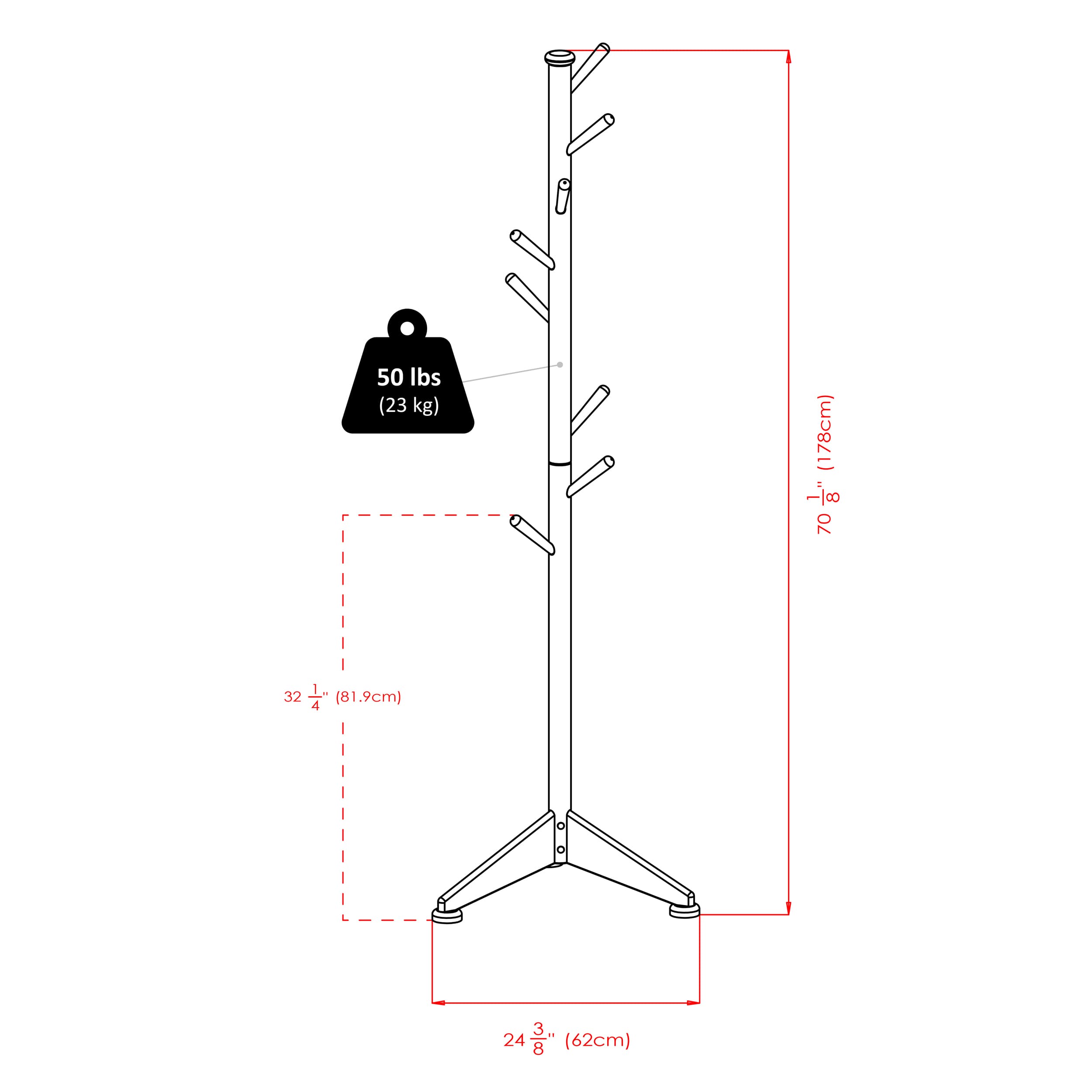 Lily 9-Hook Coat Rack, 70” High, Walnut