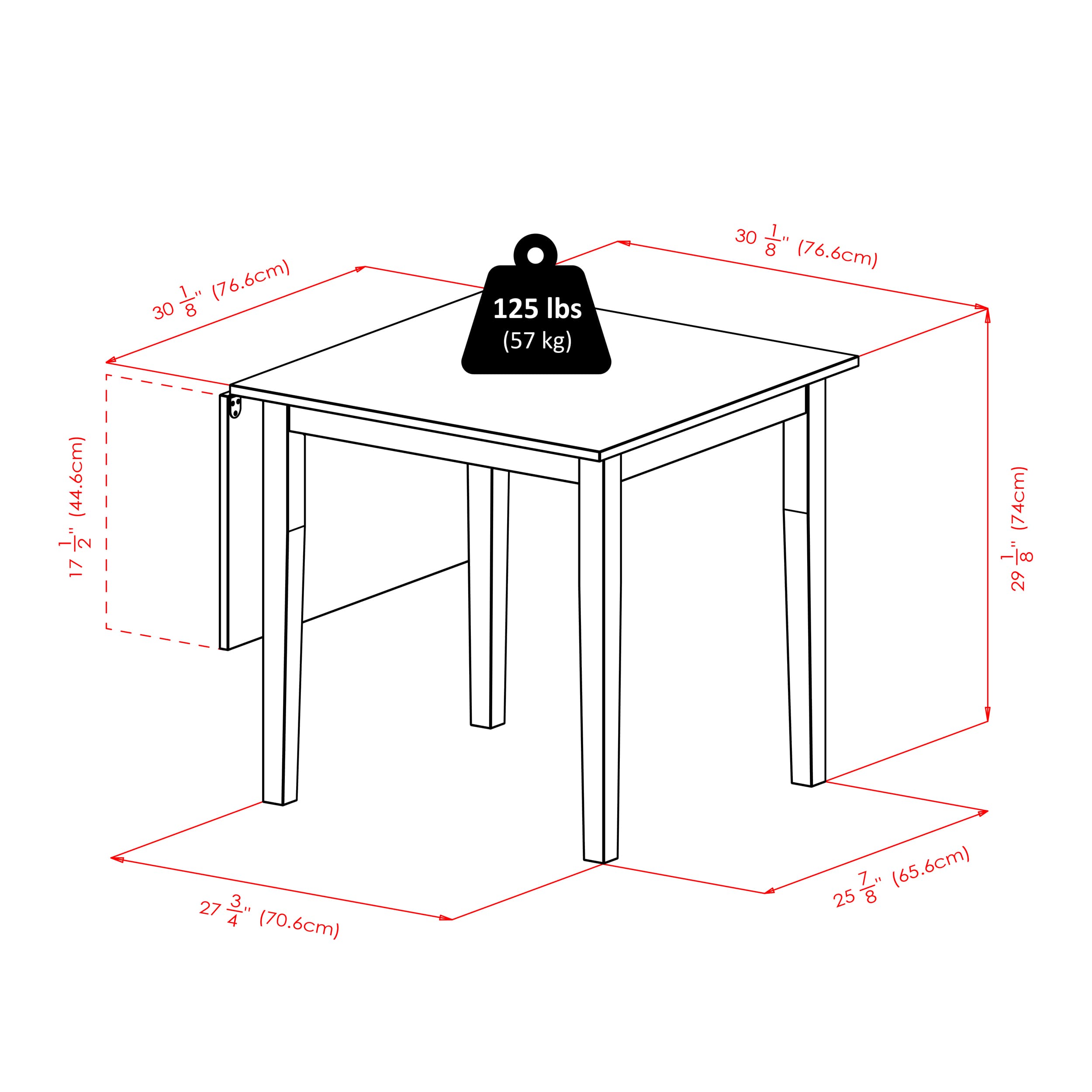- Assembly required with necessary hardware included
