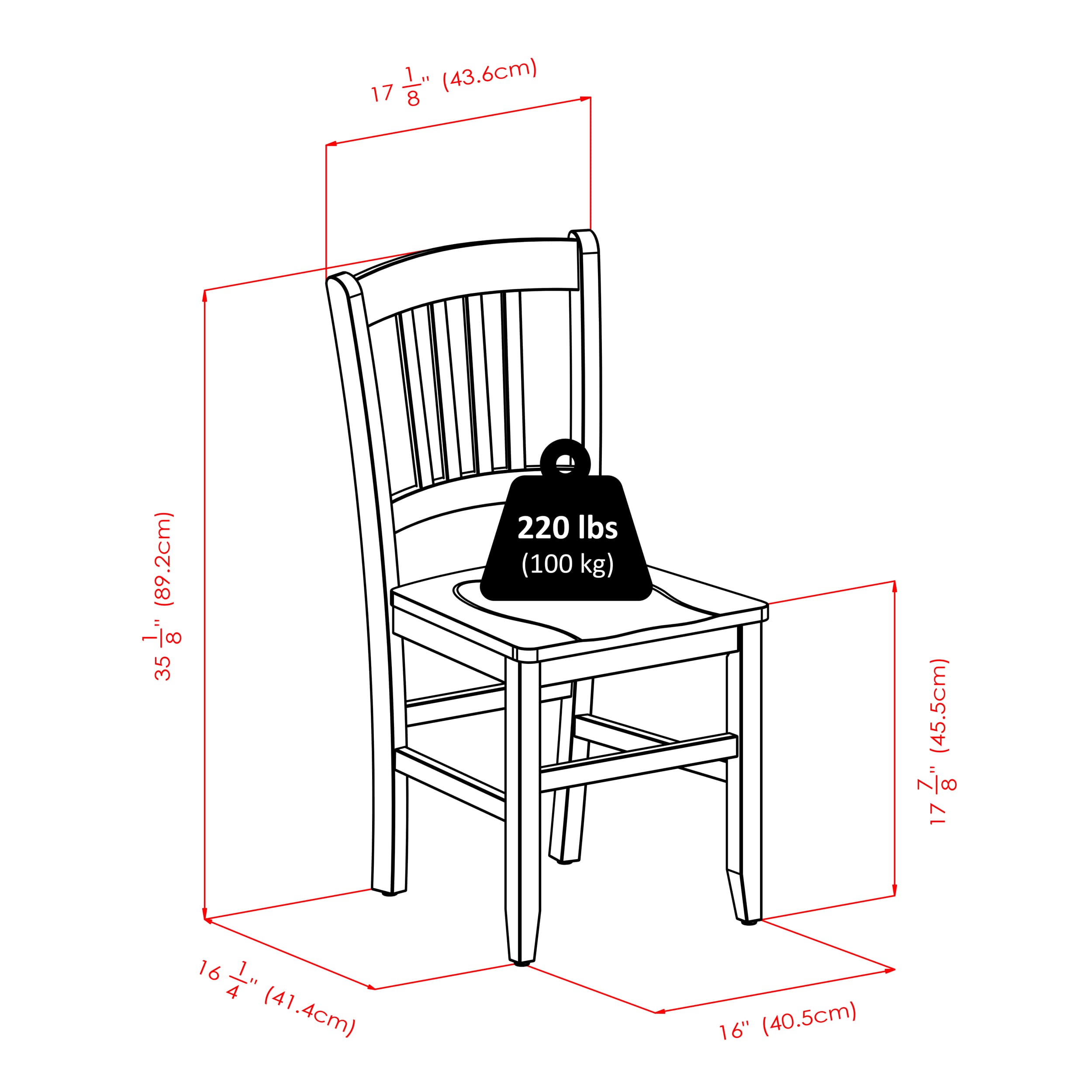- Includes 2 slat-back chairs with curved backrests, contoured seats, and footrests for comfortable seating