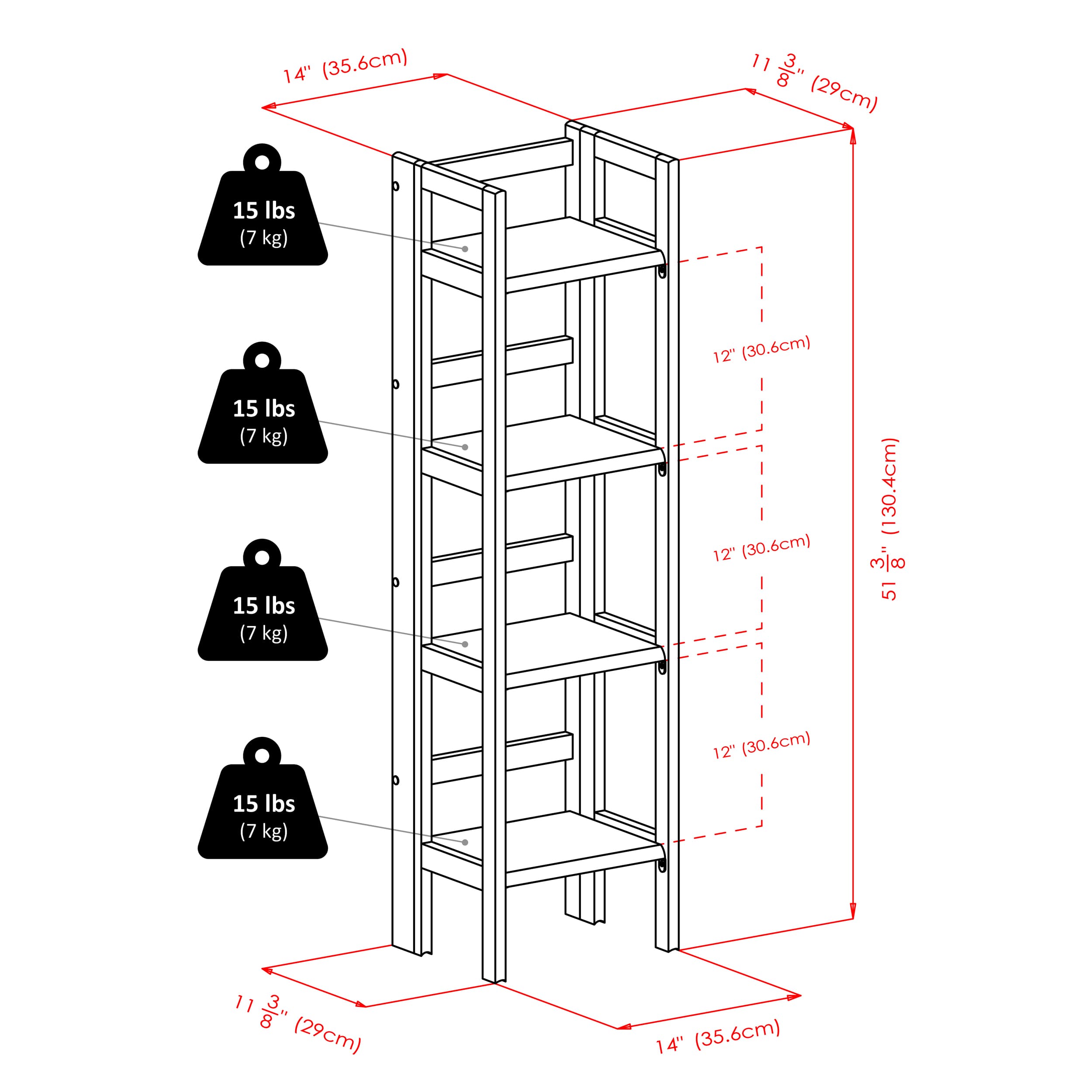 Terry 4-Tier Foldable Shelf, Narrow, Walnut