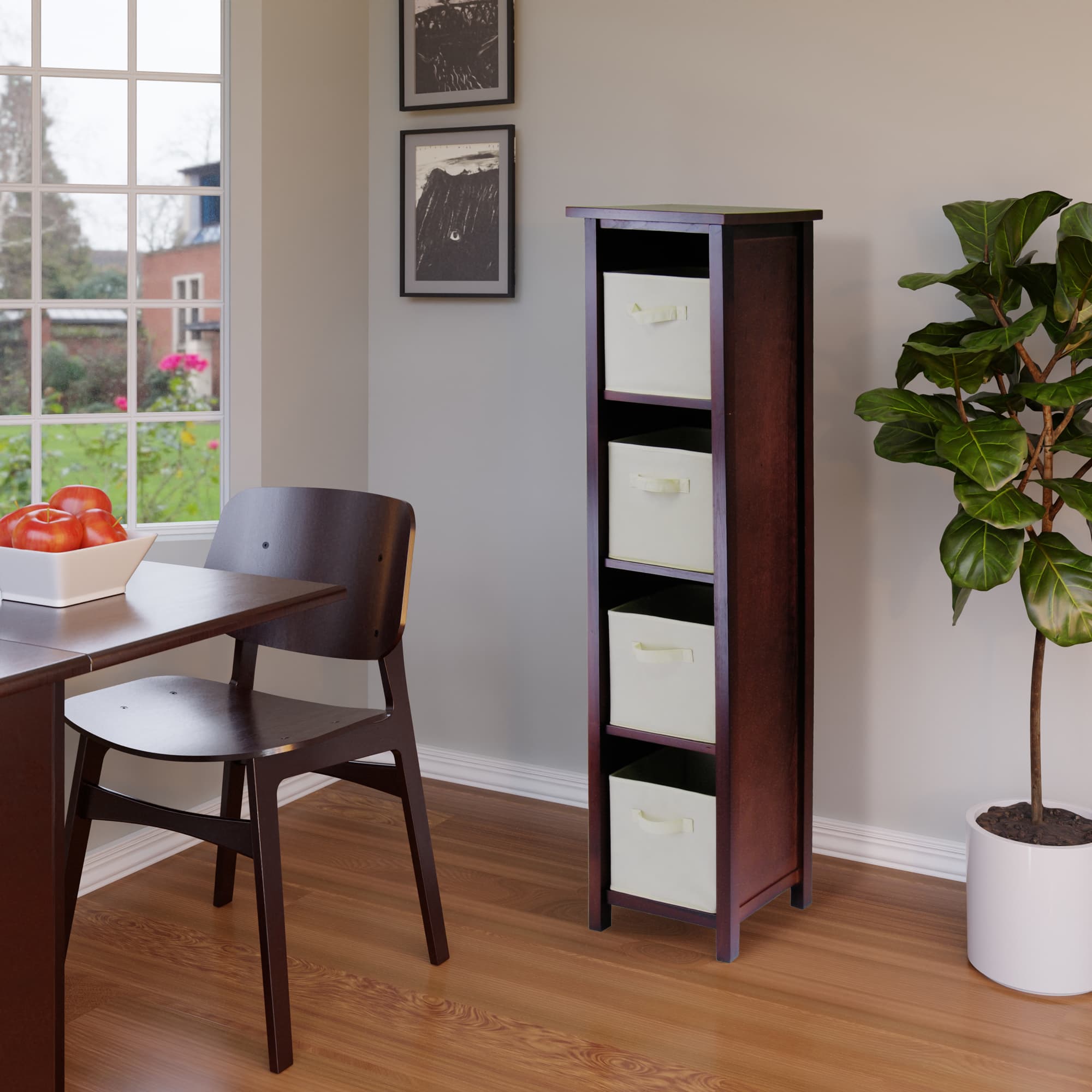 Verona 5-Pc Storage Shelf with 4 Foldable Fabric Baskets, Walnut and Black