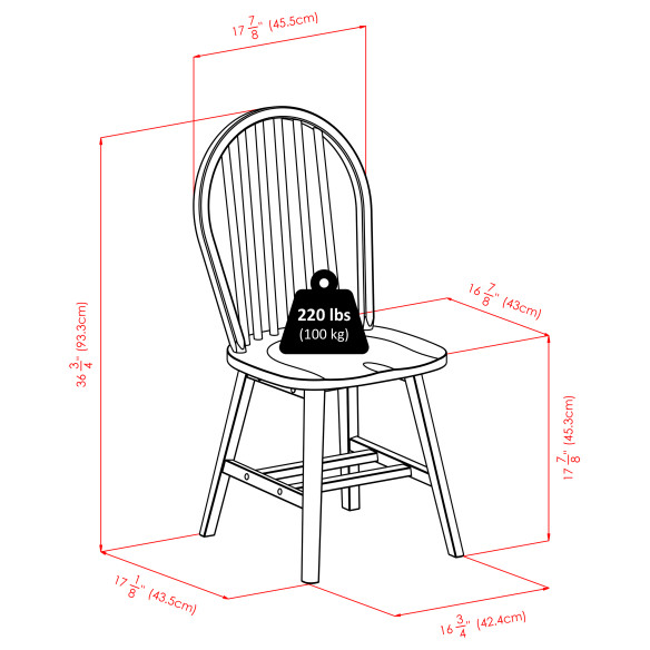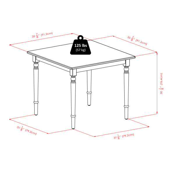 - Dimensions (W x D x H): Table - 35.91 x 35.91 x 30.08 inchesChair - 17.91 x 20.57 x 36.72 inches