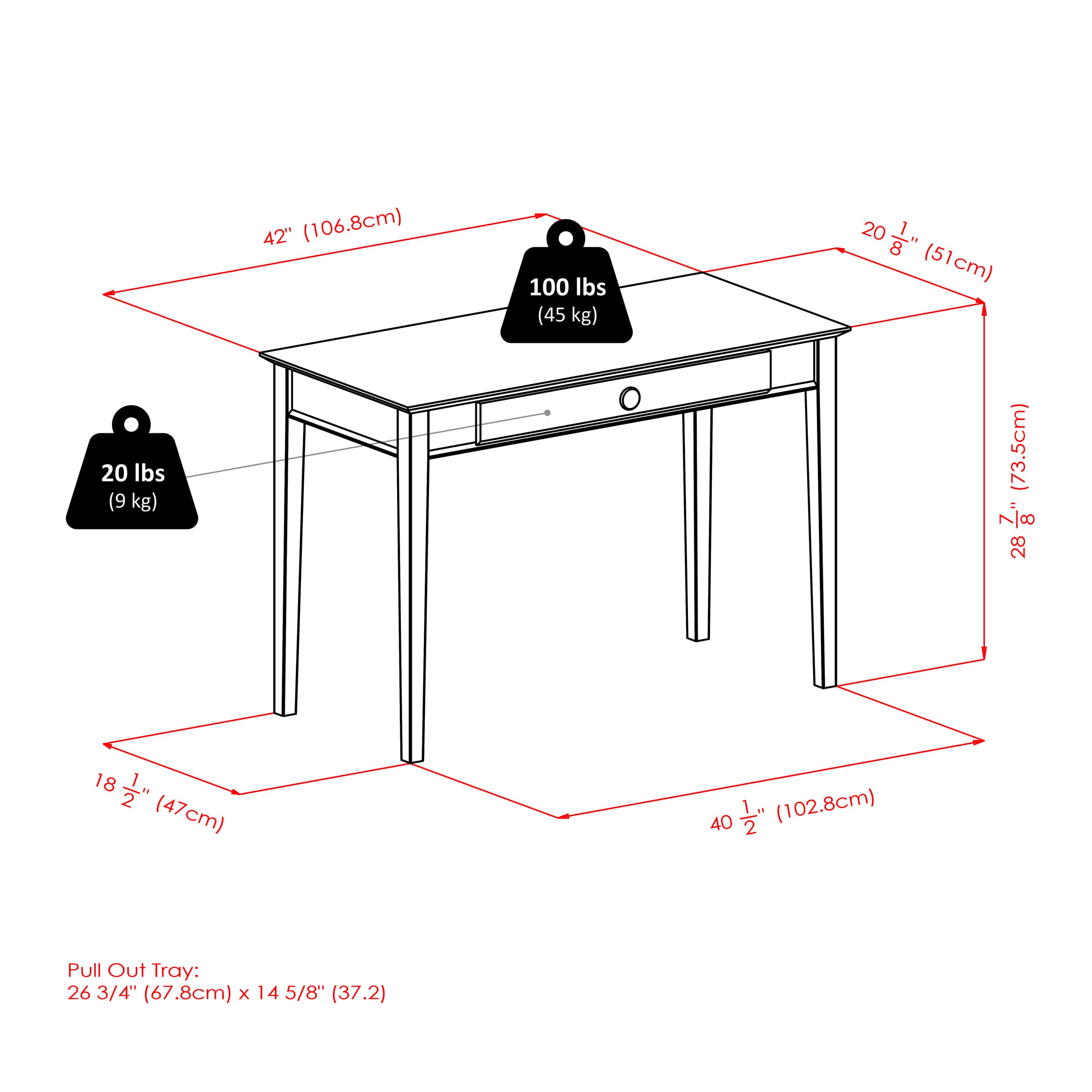 - Table includes a pull-out keyboard tray for convenient keyboard and mouse storage, creating extra table top space.